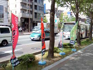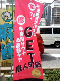 こんにちは(^◇^) ゴールデンウィークも終わり、GET唐人町店も益々パワーアップしています♪♪ そこで 会員さんで気付かれた方いるのかなぁ・・ 4色のGET唐人町店オリジナルのぼりが、成城ビルの前に現れました!! 派手なピンクの、のぼりや・・ 黄緑ののぼりなど 総勢4色に彩られたのぼり達。 実はコレ・・ 全て、私小野寺のデザインです(*^_^*) 成城ビル前を通った際は、是非見てください。 これで、目立つこと間違いなし!!
