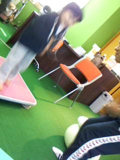 皆さん、この板↓↓を使って、トレーニングをやったことあります? この四角形の板は“エアボード”といって この板の上で、跳んだり跳ねたりしながらトレ-ニングします!! 8月にGET唐人町店にリニューアルしてからは このボードを使ってのトレーニングは 一切、行っていませんでしたが 10月にもなり 店内の気分も少し変えたかったので 久し振りにエアボードを復活させました!! この配置から(以前、ブログに載せた写真↑↑です) こんな感じに変えました!! そして・・ 1,2 ・・・ 1,2 ・・・ 1,2(ワン,ツー ・・・ ワン,ツー ・・・ ワン,ツー) ボードの上で動きまくりッス♪♪ 私もテンション↑↑で 昨日はひたすら、エアボードで踊って跳ねて?トレーニングしました。 皆さん、久し振りのエアボードにかなり喜んでいました(#^.^#) 中には、20分のエアボードトレーニングで-1㌔体重が落ちた方もおられ エアボード大好評でした!! そこで・・・ 好評だったので、本日10月3日も調子に乗って 朝9時から エアボードで ハッスル♪ハッスル♪♪ しちゃいました! ちょうど、このトレーニングをしていた時に ジャッキー・チェンの映画を皆でみていたので 指先から手首まで こうなりました↓↓ 違い、分かりましたか? みんなでやれて、凄く楽しかったので これから、週2のペースぐらいで エアボードのトレーニングも入れていきたいと思います(笑) さぁ、午後も 1,2♪ 1,2♪♪ 1,2♪♪♪